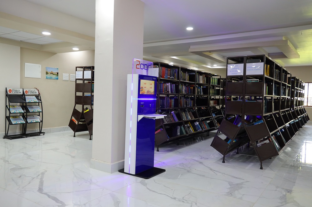 Our Central Library is one of the finest libraries, functioning in Separate block. It is air-conditioned with serene ambience and state of the art infrastructure which provides comfortable learning environment with resource material of the highest quality, to teach& learn skills needed for academic inquiry and lifelong learning to support faculty and postgraduate research, which is continuously being updated with new volumes of books and journals.